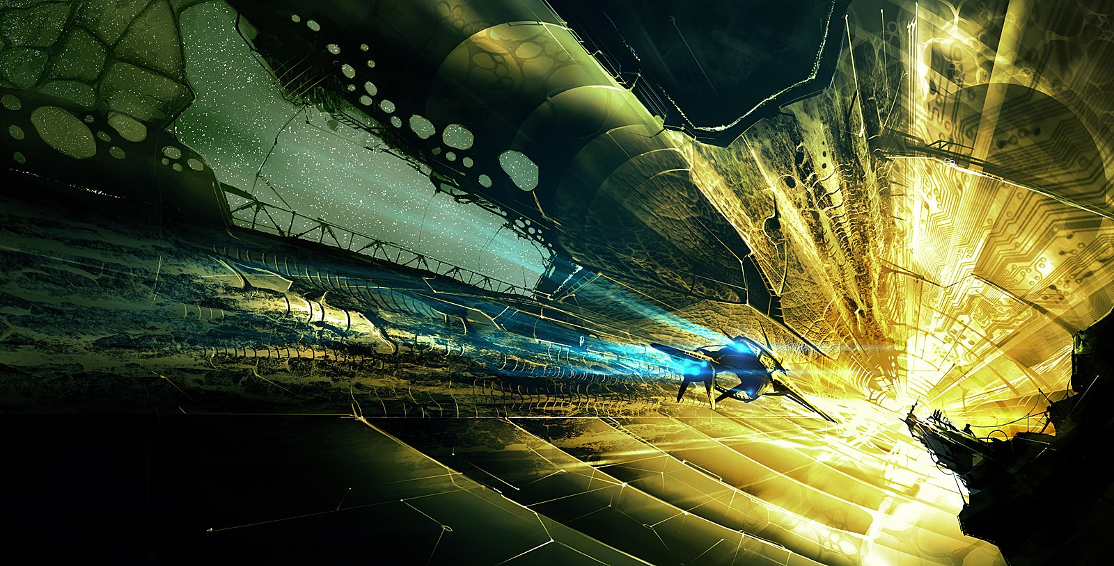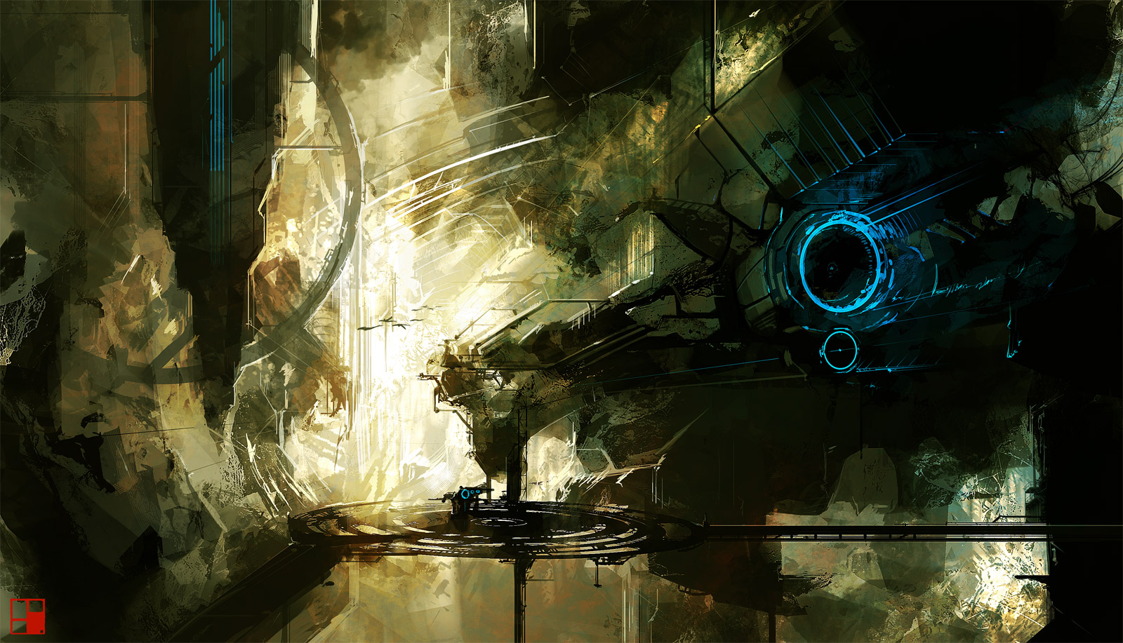mostly just a simple matte painting... one center layer which allows the
